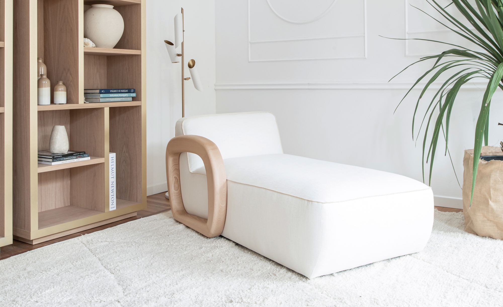 A chaise longue that encapsulates the essence of modern elegance, Monterey. Its gracefully curved wooden armrest resemble a spinning wheel, exuding timeless style. The deep seat and inviting lines make Monterey a perfect and versatile addition to any living and comfort area. A piping in rafia or fabric embellishes the fabric upholstery.
