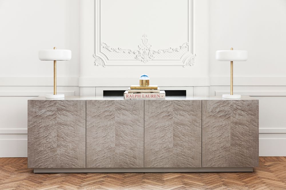 Realizzato con precisione sartoriale, Axel è un mobile contenitore che offre spazio funzionale per oggetti di servizio o decorativi, pensato in un soggiorno moderno o in una sala da pranzo.