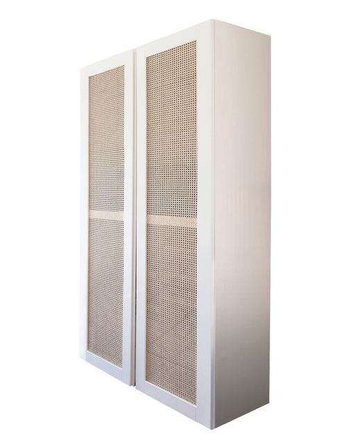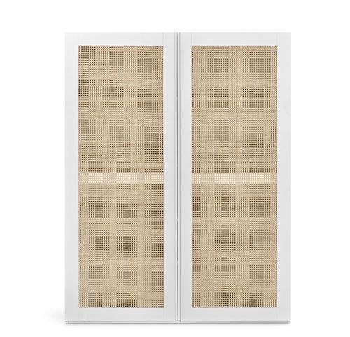 Fresco e leggero, il cabinet Quisisana Basso ha una presenza inconfondibile. Caratterizzato da paglia di Vienna o rafia, materiali di cui è facile innamorarsi, ricco di carica evocativa di altri tempi. Le ante sono lievi all’apertura e alla chiusura, per caratteristiche funzionali del materiale e per soluzione progettuale, grazie al meccanismo che accompagna i gesti. La traforatura della materia naturale crea un gioco delicato di luci e di ombre. La scanalatura dolce sul bordo dell’anta è un dettaglio delicato che si fa scoprire e amare nel tempo. Le varianti di Quisisana segnano ciascuna con la sua impronta gli ambienti che vanno ad abitare. Il cabinet basso a quattro ante ha una funzione e una presenza già ben distinti da quello di altezza media; quello più alto ha a sua volta due versioni, potendosi evolvere in un vero mobile dressing, di maggiore profondità. Quattro portamenti diversi, sempre lo stesso spirito leggero e solare.
